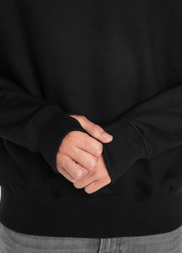 Crafted from thick 400 gsm cotton blend, the sweatshirt is soft on the inside thanks to its brushed finish while remaining durable on the outside. Strong ribbed cuffs and waistband ensure a secure fit, and added thumb holes in the sleeve welts provide both function and comfort.